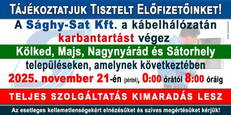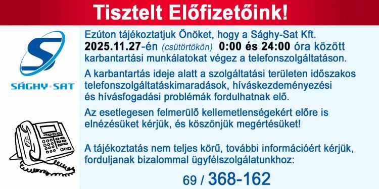 Karbantartás 2025. november 21-én (péntek) 0:00 órától 8:00 óráig