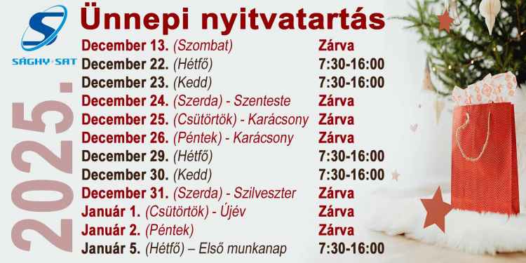 Ünnepi nyitvatartás 2025. dec. -2026. jan.